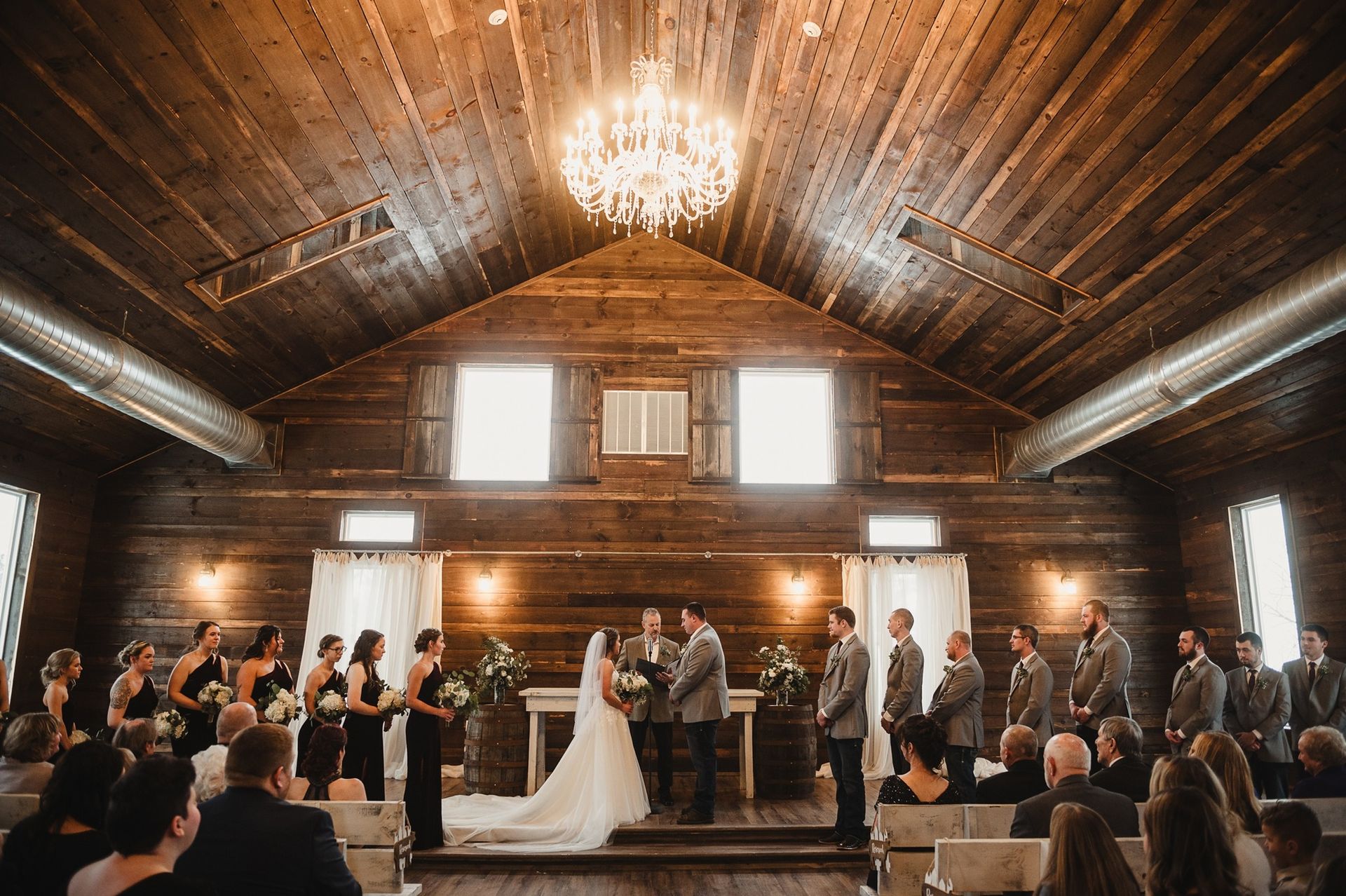 Designed for your wedding ceremony, our Ceremony Barn offers comfort, convenience, and privacy for your event. Seating up to 250 guests and located a short walk from our Reception Barn, this rustic and elegant space also provides heating, air conditioning, indoor bathrooms, and a Bridal Suite.